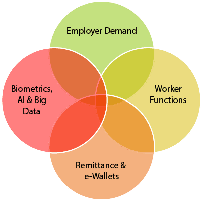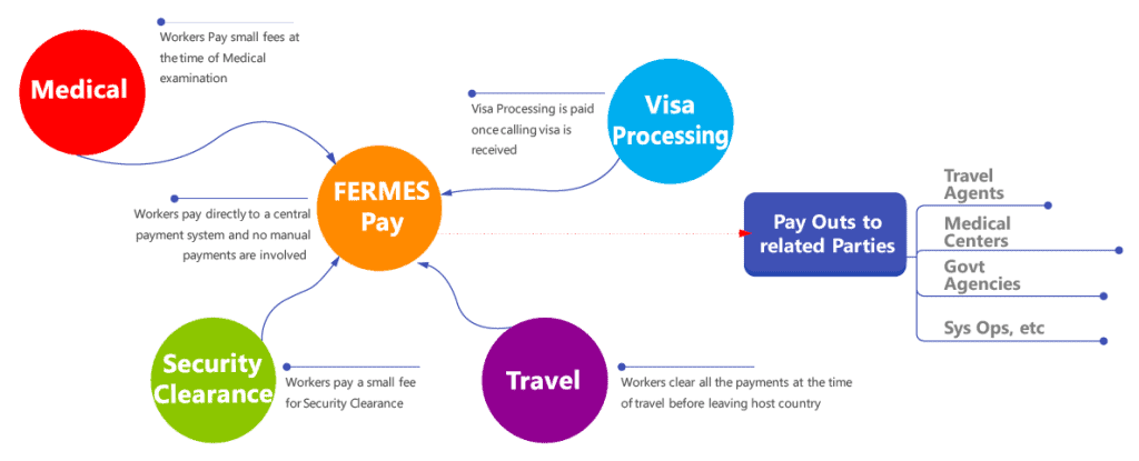 FERMES incorporates a complete eco-system ranging from the creation of demand to the visa process in the host country, receipt of workers in destination country and then push this information through the intelligent systems for predictive analytics to assist government and agencies for their policy making information.